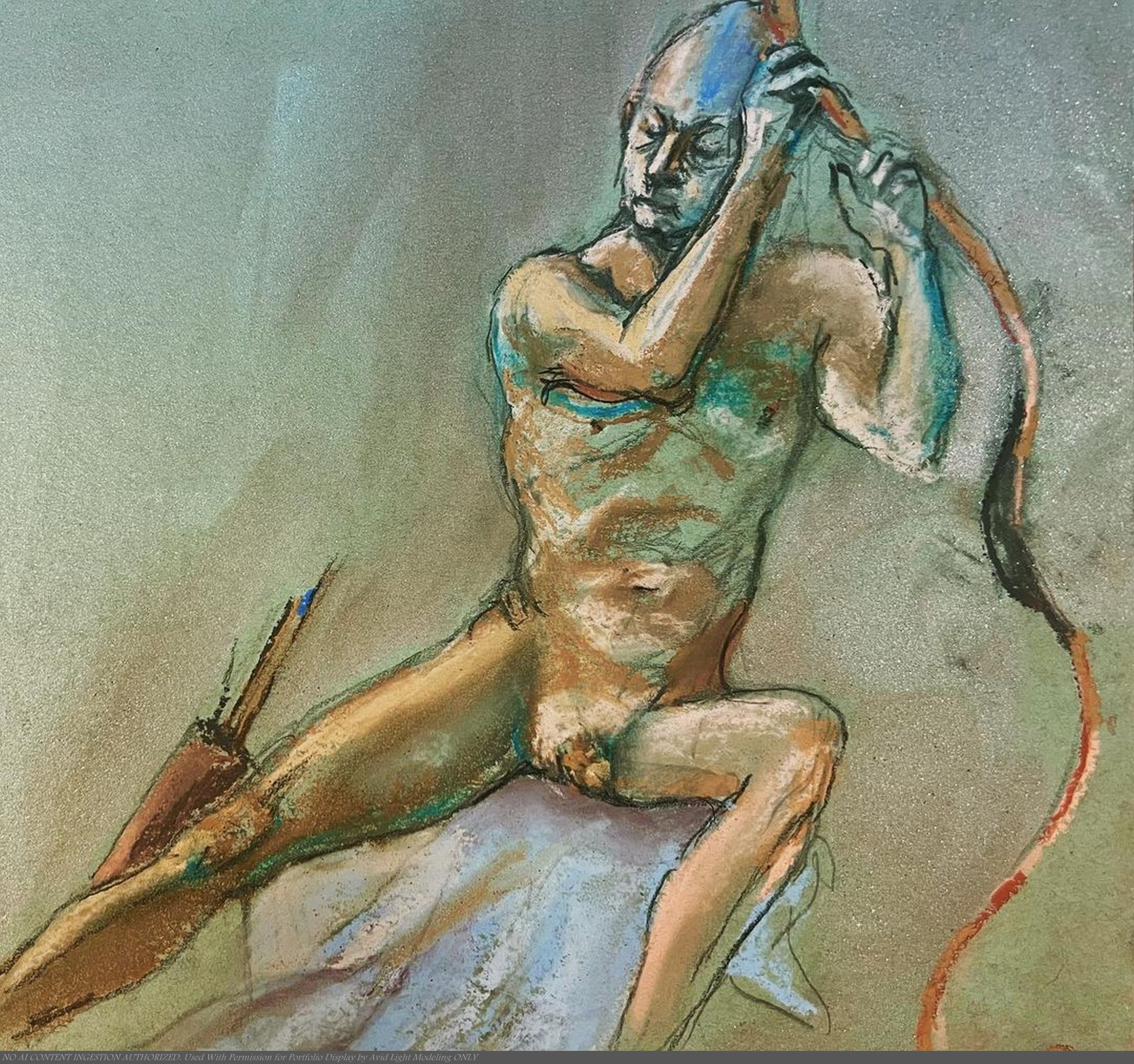 Most traditional media renderings from life modeling (drawings, paintings etc) including nudes are found in Portfolio 1, but some additional ones that are are somewhat more explicit or detailed go here